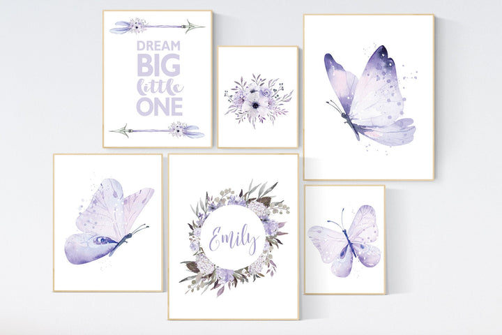 Nursery decor girl butterfly, nursery decor girl boho, nursery wall art purple, lilac, lavender, Butterfly Nursery Art, floral, flower