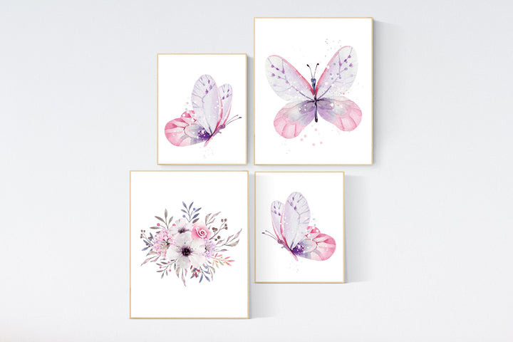 Nursery decor girl butterfly, pastel colors, pink nursery, Butterfly Nursery Art, girls room decor, butterfly prints, lilac nursery