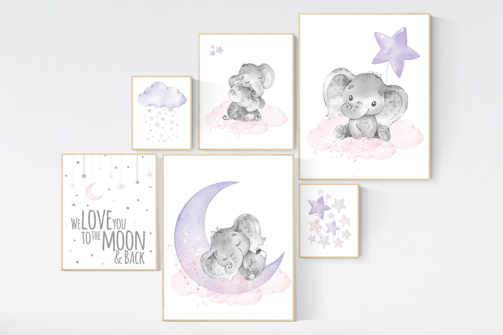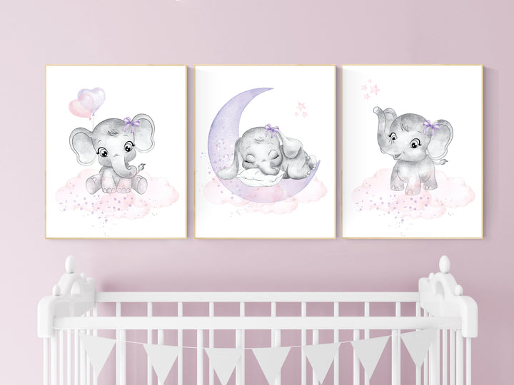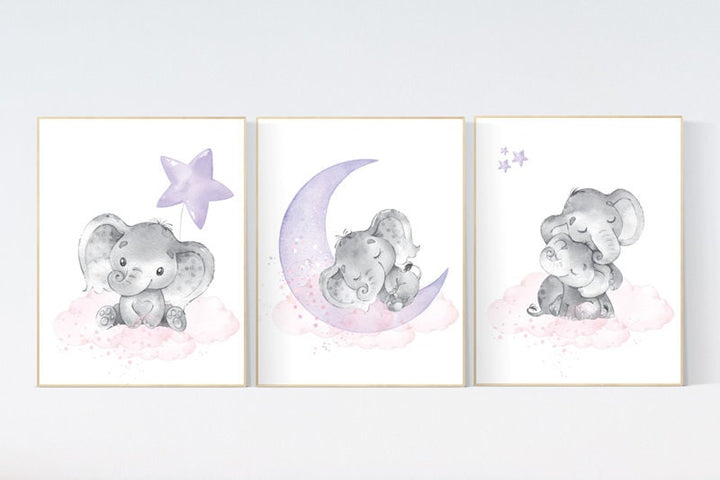 Nursery decor girl elephant, lavender, nursery decor girl pink and purple, animal nursery, elephant decor for nursery for girl, lilac art
