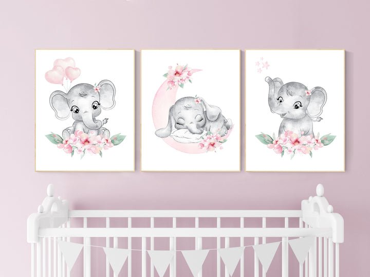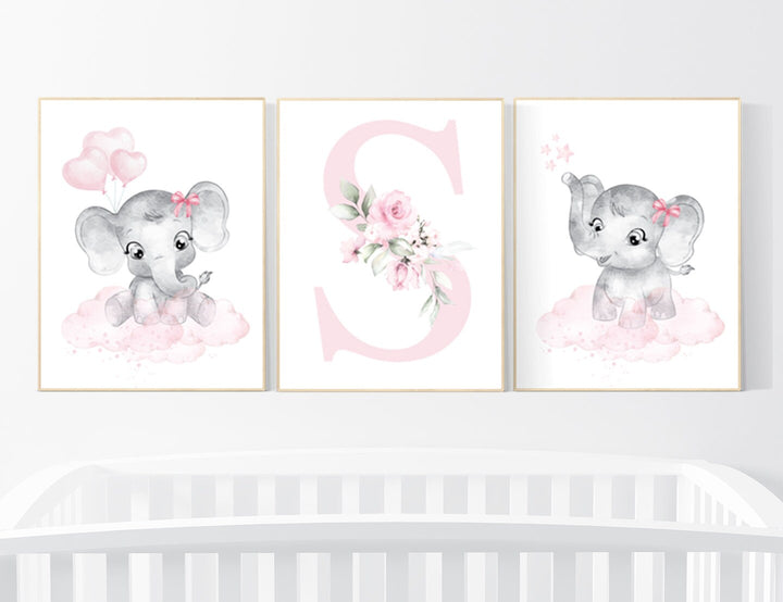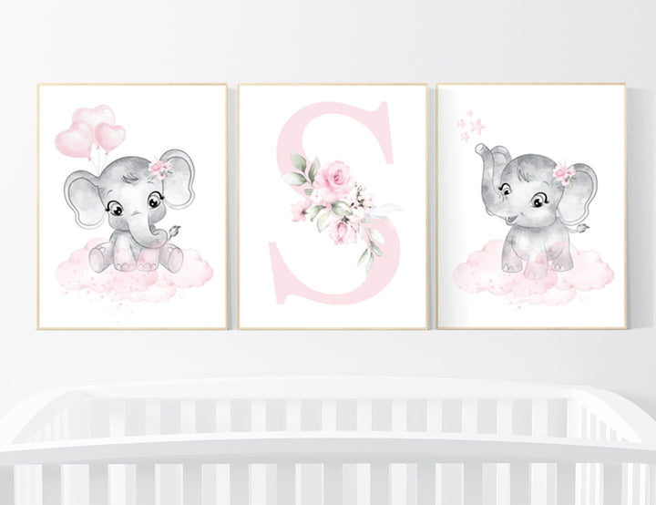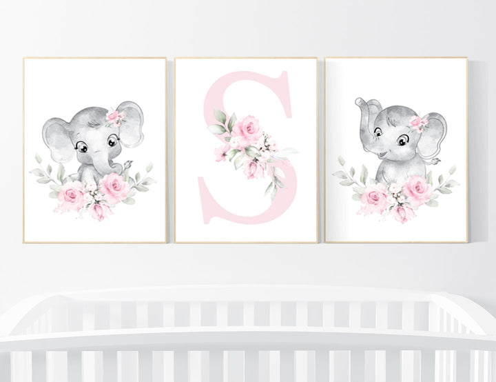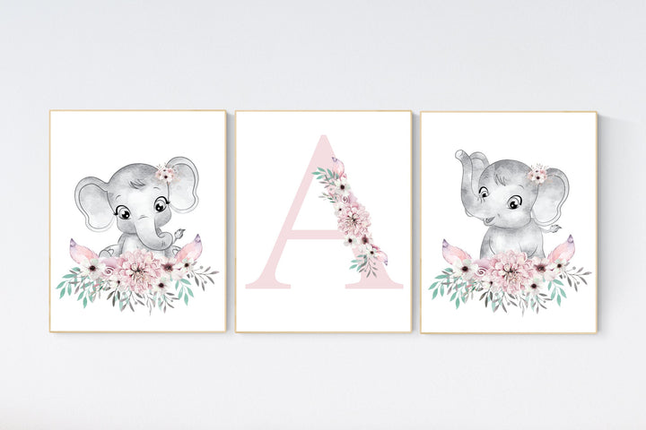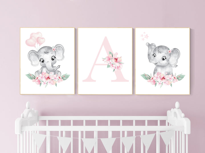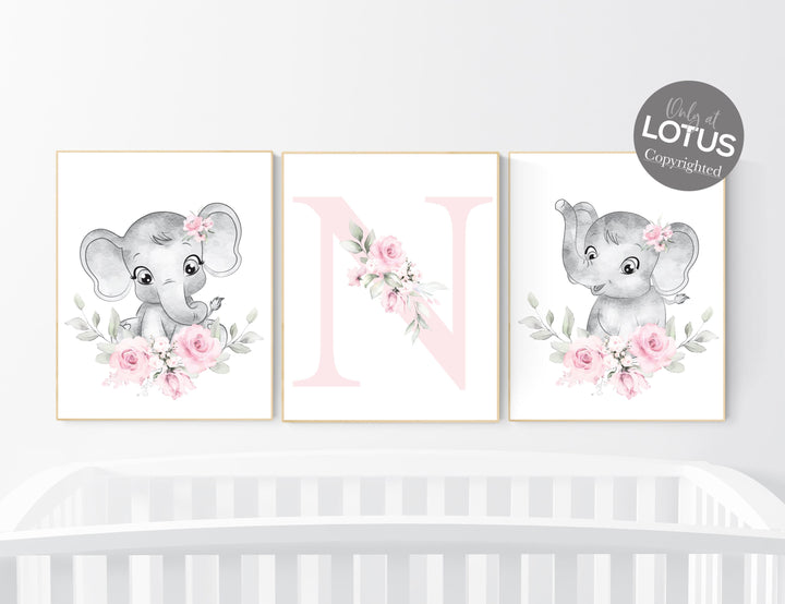 Nursery decor girl elephant, nursery decor girl flower, nursery decor girl floral