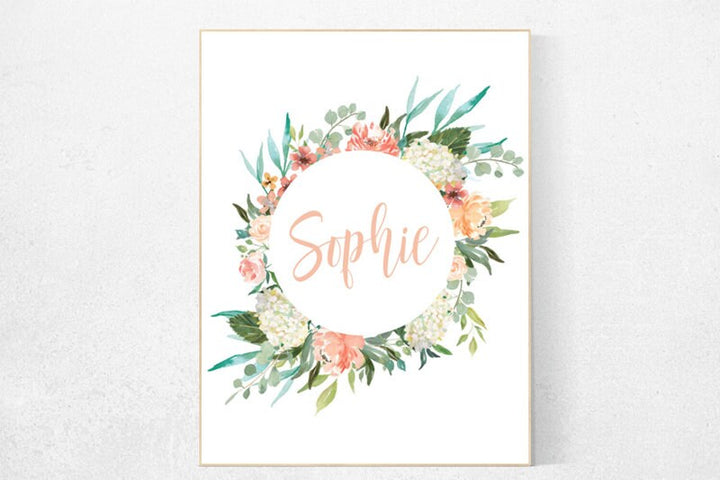 Nursery decor girl floral, nursery decor girl name, nursery decor girl flowers, blush pink, nursery decor girl boho, floral nursery prints