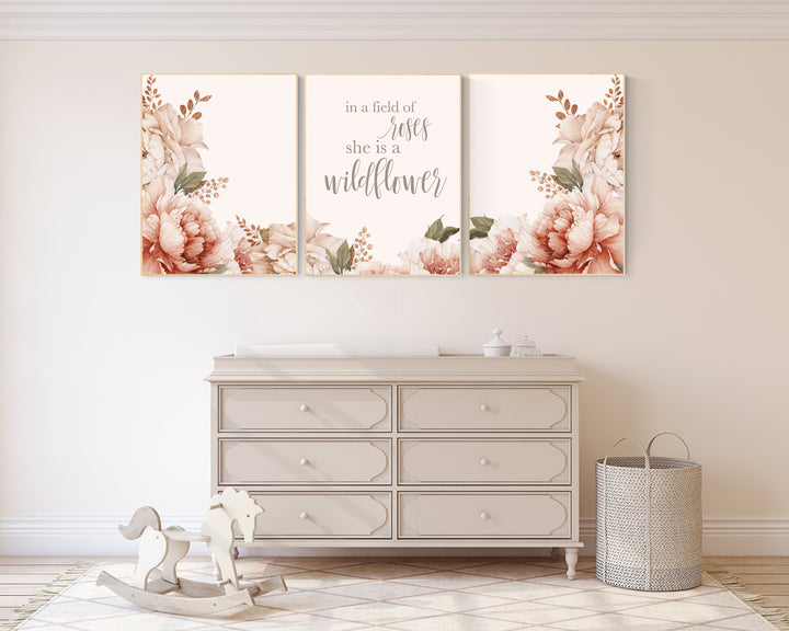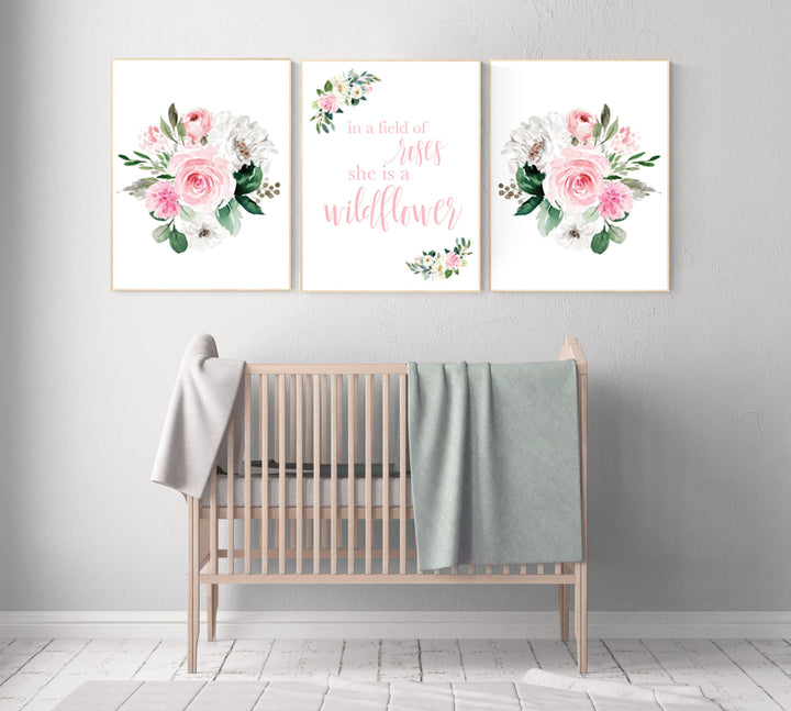 Nursery decor girl floral, nursery decor girl flowers, blush pink, nursery decor girl boho, in the field and roses she is a wildflower