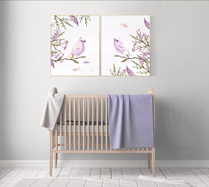 Nursery decor girl floral, lilac, Nursery wall art birds, nursery decor girl flower, baby bird nursery, purple nursery, lavender nursery