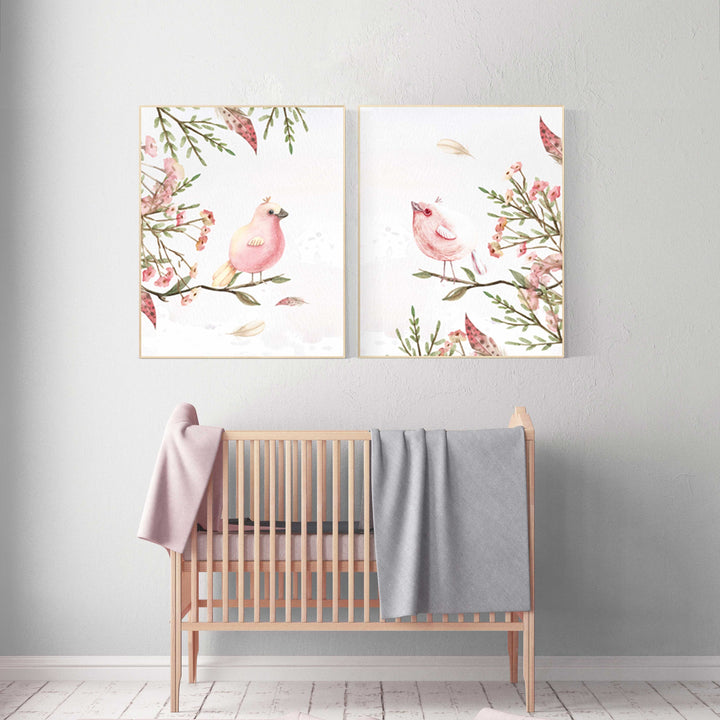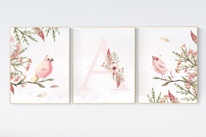 Nursery decor girl floral, Nursery wall art birds, nursery decor girl flower, baby bird nursery, spring theme baby shower, bird nursery art