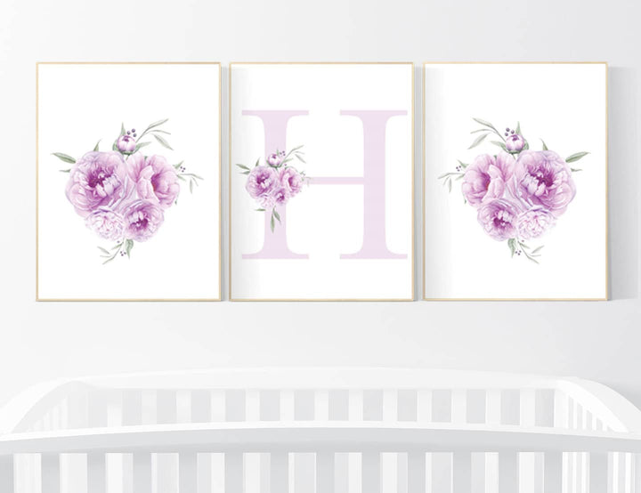 Nursery decor girl floral, Nursery decor girl purple, nursery decor girl flower, lavender, lilac nursery, nursery decor girl name, peony