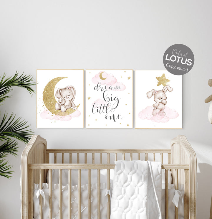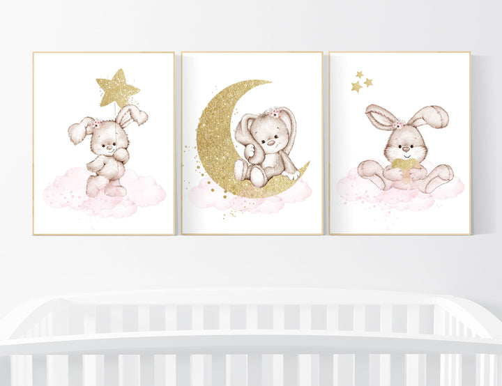 Nursery decor girl flower bunny, nursery wall art bunny, pink gold nursery decor, bunny print nursery girl, rabbit nursery, rabbit print