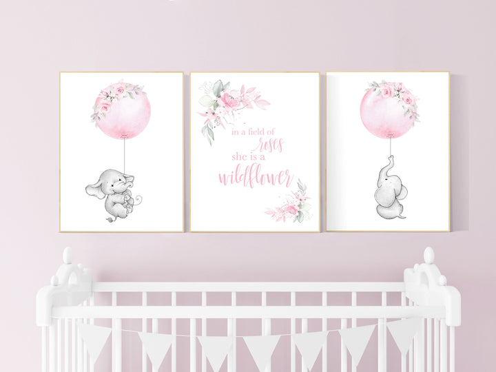 Nursery decor girl flower, blush, elephant nursery wall art, nursery decor girl floral, nursery decor girl woodland, floral nursery, boho