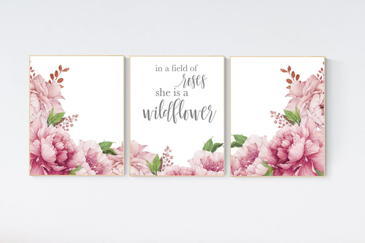 Nursery decor girl floral, nursery decor flower, nursery decor girl pink, flower nursery, In a field of roses she is a wildflower, elegant