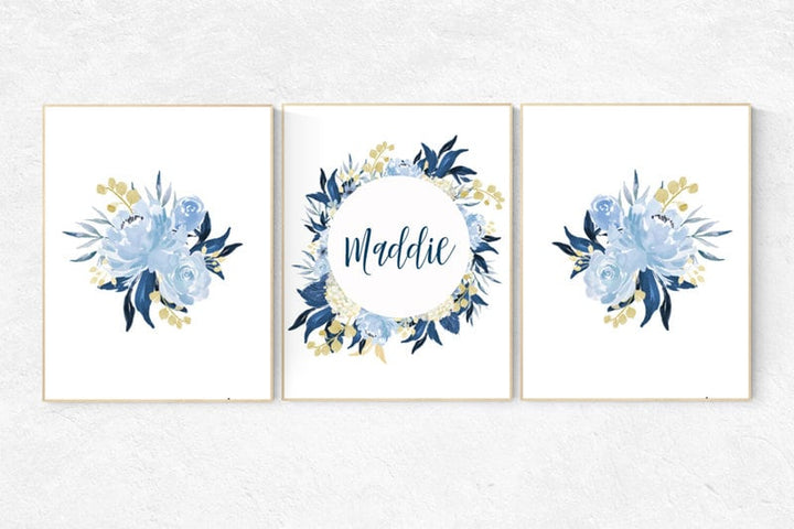Nursery decor girl flower, navy blue nursery decor, floral nursery decor, girls room decor blue, girls room decor floral, girls room decor