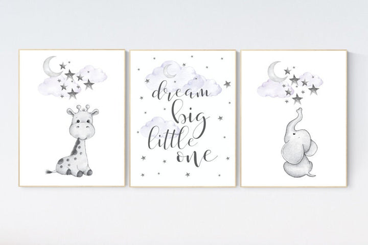 Nursery decor girl giraffe, Nursery decor girl purple, purple nursery print, nursery decor elephant, elephant giraffe, dream big little one