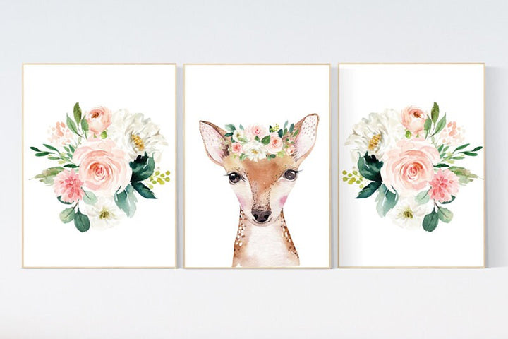 Nursery decor girl flower, blush, woodland animals, boho, nursery decor girl floral, peach nursery decor, floral nursery, deer, animals