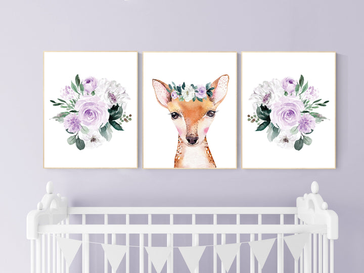 Nursery decor girl flower, purple, woodland animals, boho, nursery decor girl floral, purple nursery decor, floral nursery, deer, animals