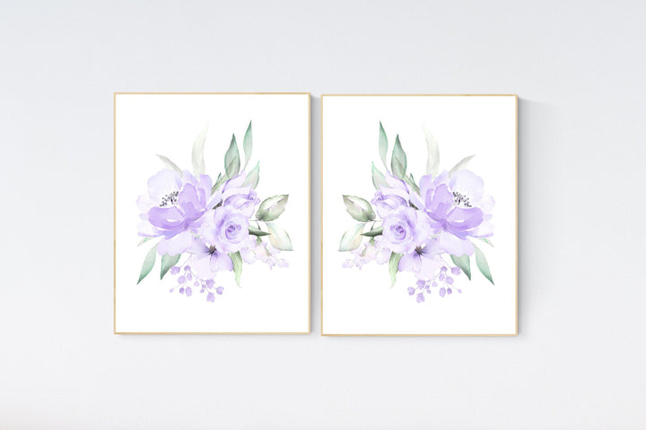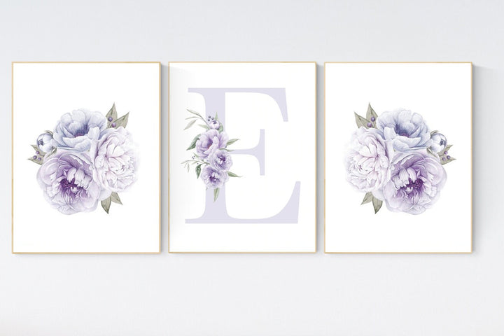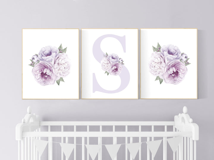 Nursery decor girl flower, floral nursery, lilac nursery, purple, peony flower, lavender nursery, girl nursery wall decor, set of 3 prints