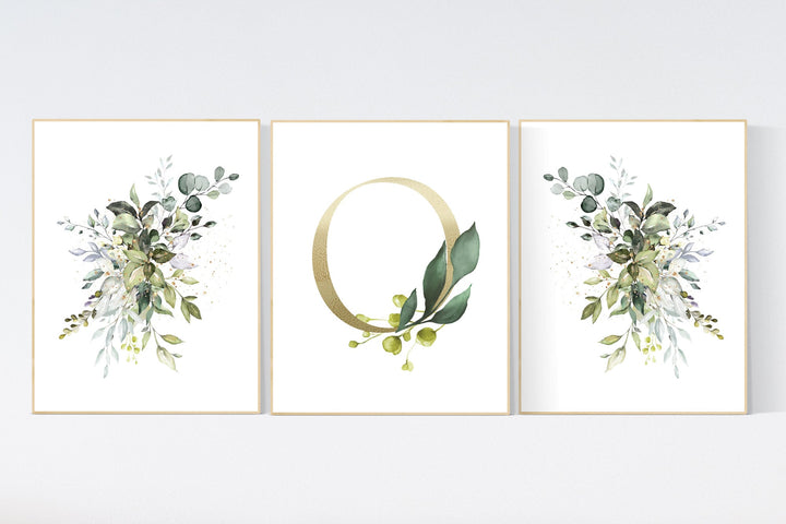 Nursery decor girl flowers, green flowers, herbal, green and gold, Nursery decor girl name, girl nursery wall decor, floral nursery decor