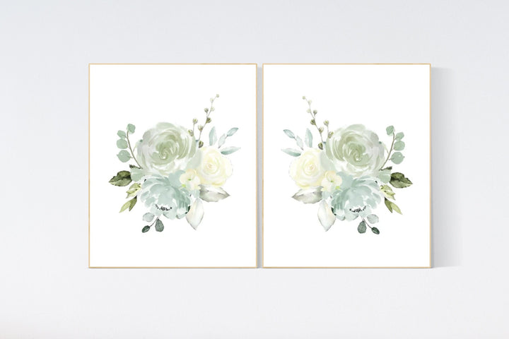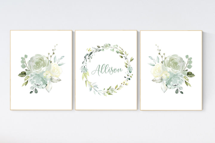 Nursery decor girl flowers, green flowers, herbal, green, mint green, sage green, Nursery decor girl name, girl nursery wall decor