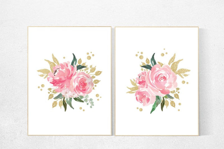 Nursery decor girl pink roses, nursery decor pink and gold, nursery decor girl flower, girls room decor flowers, pink and gold floral