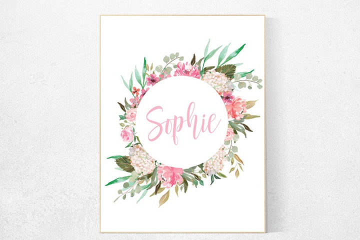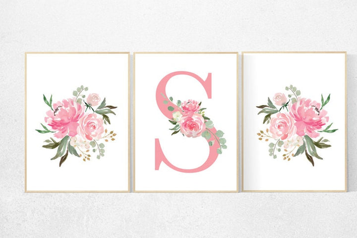 Nursery decor girl pink roses, nursery decor girl flower, nursery decor girl name, name sign for nursery, nursery decor girl pink, floral