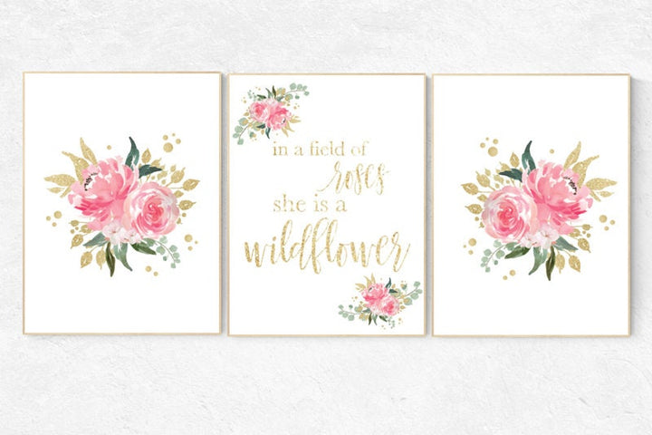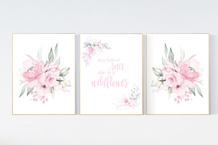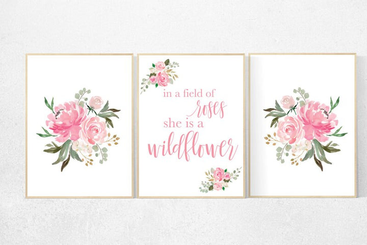 Nursery decor girl pink roses, nursery decor flower, nursery decor girl floral, flower nursery, In a field of roses she is a wildflower
