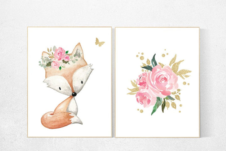 Nursery decor girl pink roses, nursery decor pink and gold, nursery decor girl flower, girls room decor flowers, pink and gold, woodland