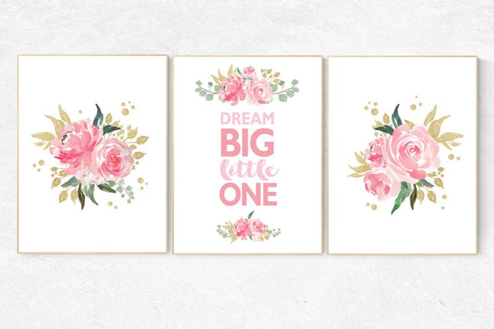 Nursery decor girl pink roses, nursery decor flower, pink and gold nursery, nursery decor girl floral, flower nursery, dream big little one