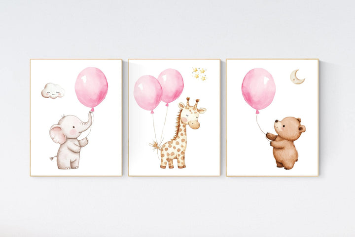 Nursery decor girl pink, animal nursery, nursery decor girl, balloon nursery, girls room decor pink, animal prints, girls nursery