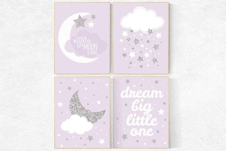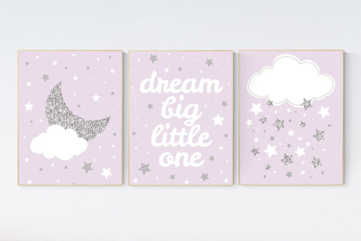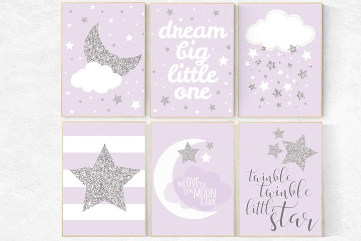 Nursery decor girl purple silver, lavender nursery art, lilac nursery decor, girls room decor purple, twinkle twinkle. dream big little star
