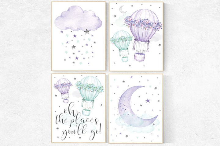 Nursery decor girl purple turquoise, nursery decor girl purple, lilac, lavender, mint, nursery decor girl hot air balloon, nursery wall art