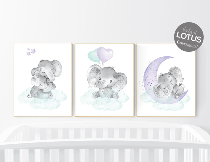 Nursery decor girl purple teal, elephant nursery, nursery decor girl purple, lilac, lavender, mint, nursery decor elephant, girl nursery