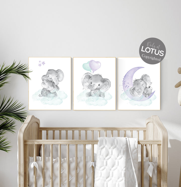 Nursery decor girl purple teal, elephant nursery, nursery decor girl purple, lilac, lavender, mint