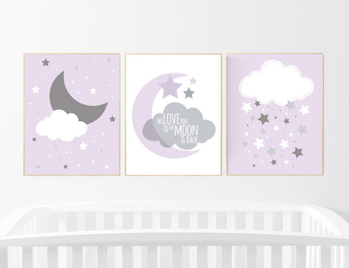 Nursery decor girl purple, girl nursery wall decor, lilac, lavender, nursery prints girl, nursery prints girl, moon nursery, purple nursery