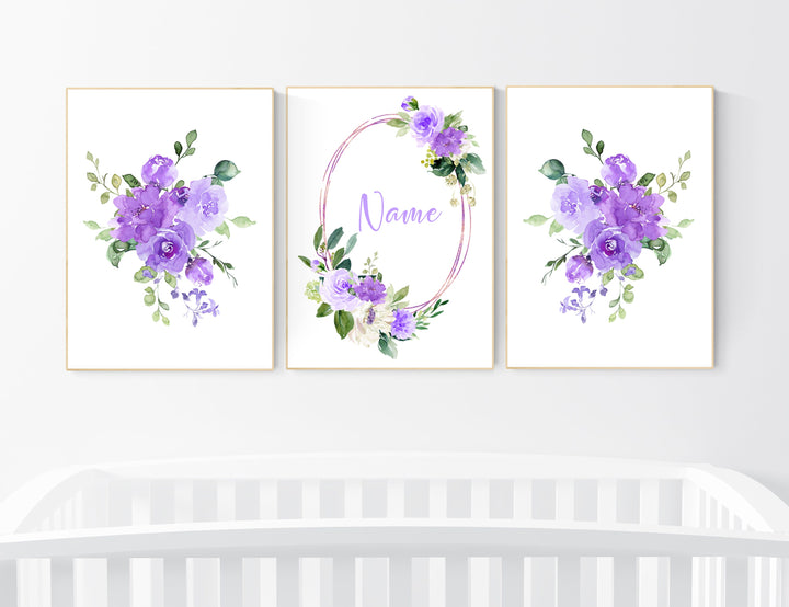 Nursery decor girl purple, floral nursery, flower nursery, purple nursery, lavender, name nursery, floral nursery, purple flowers