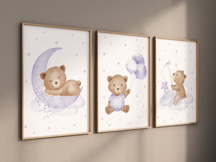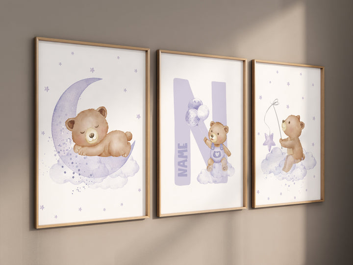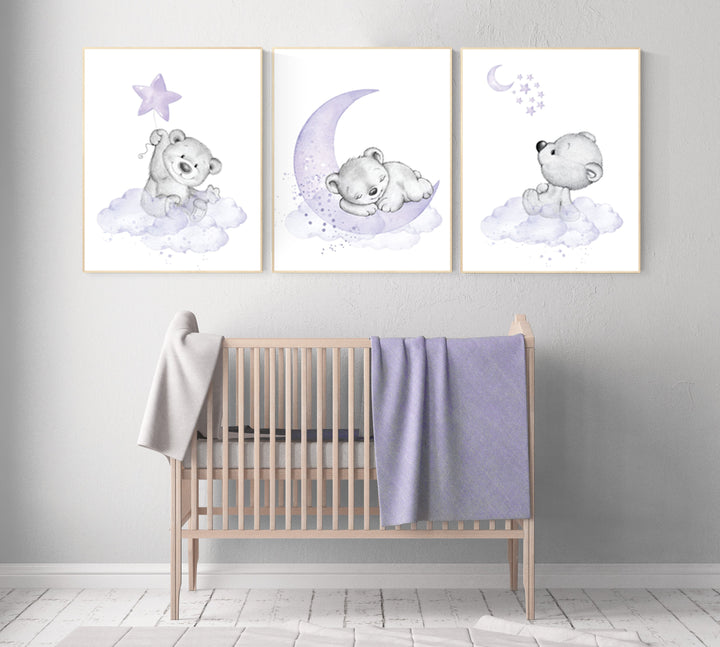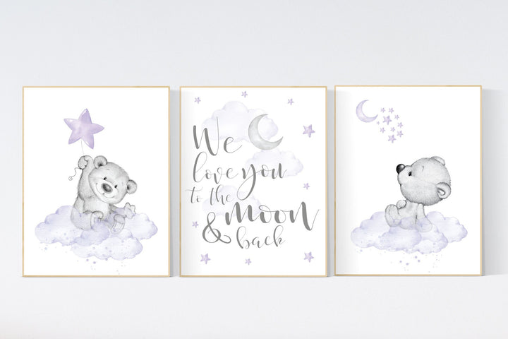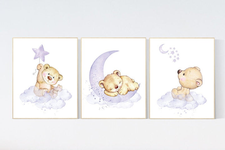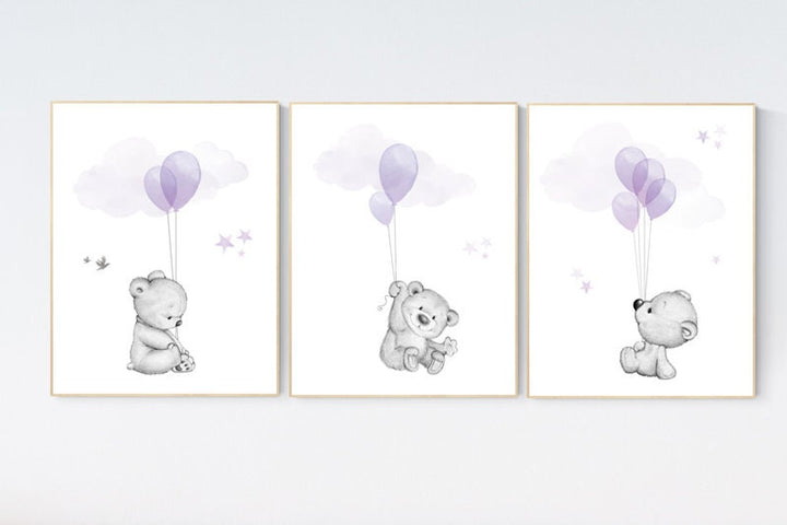 Nursery decor girl purple, nursery decor bear, teddy bear nursery, lilac nursery print, lavender, baby room decor, nursery wall art animals