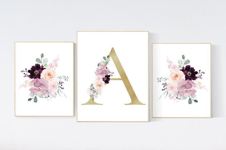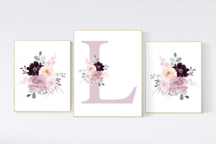 Nursery decor girl purple, mauve, Burgundy, floral nursery, flower nursery, butterfly, nursery prints girl, nursery wall decor girl, name