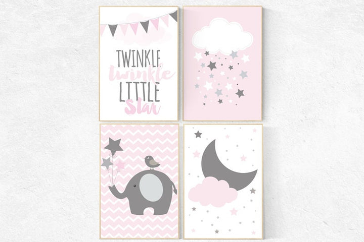 Nursery decor girl, Baby girl nursery, elephant nursery, cloud nursery, nursery ideas, pink nursery, nursery wall art girl, nursery prints
