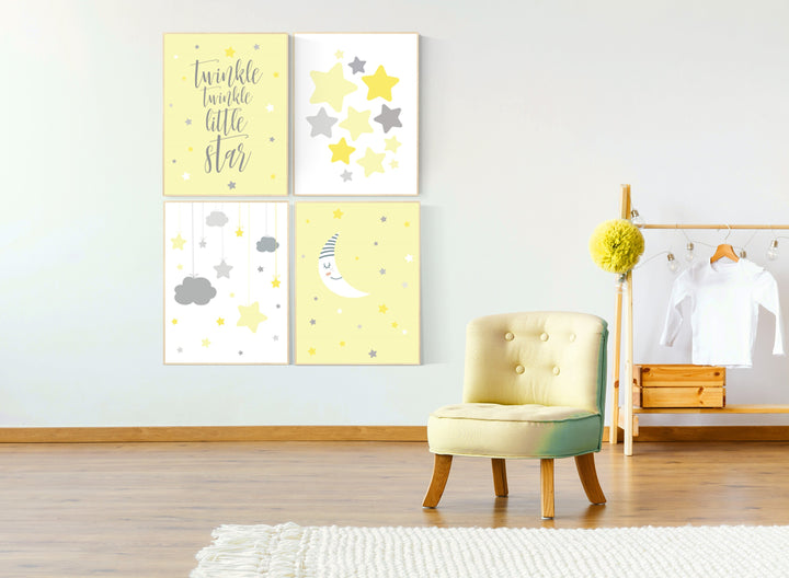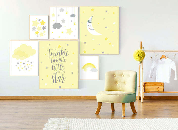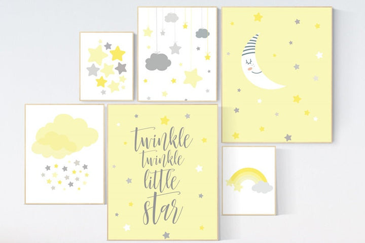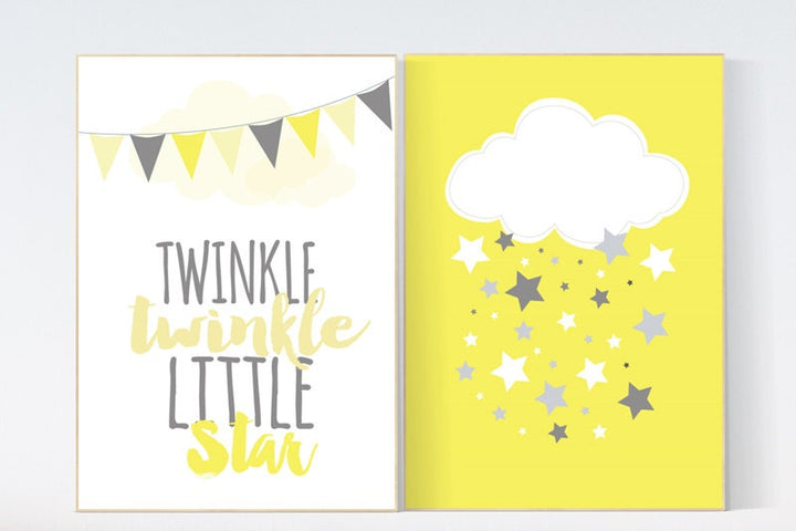 Nursery decor girl yellow, gender neutral baby, Twinkle Twinkle Little Star, cloud nursery, new baby gift, yellow gray nursery, baby room