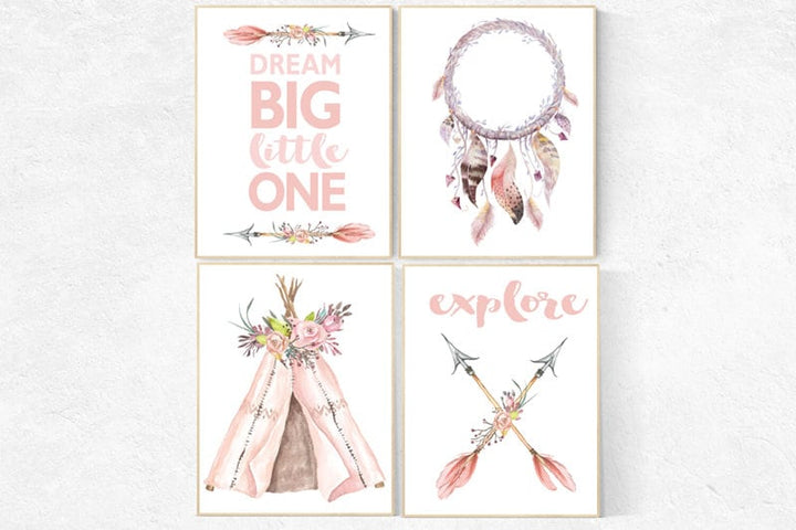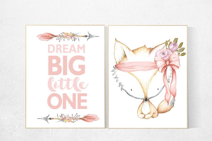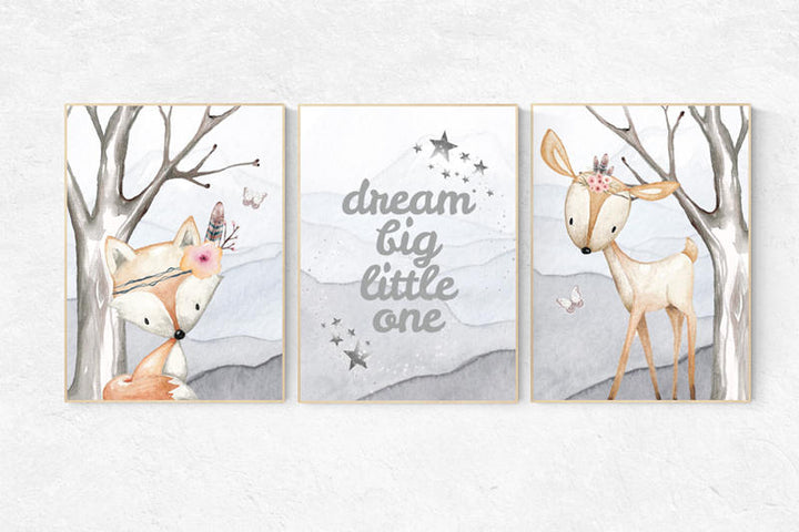 Nursery decor girl woodland, nursery decor woodland, nursery prints girl, girls room decor flowers, dream big little one, tribal nursery