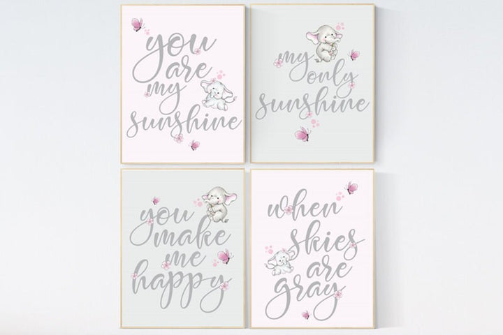 Nursery decor girl you are my sunshine, nursery decor girl pink roses, nursery decor girl floral, flower nursery decor, elephant nursery
