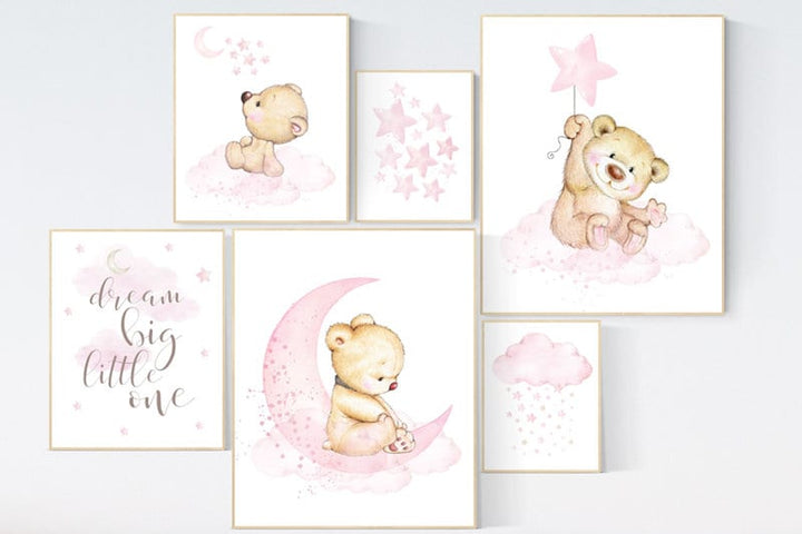 Nursery decor girl, bear nursery decor for girls, nursery decor girl, girl wall art, dream big little one, teddy bear nursery, pink nursery