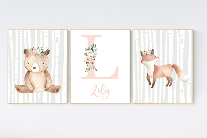 Nursery decor girl woodland, woodland animals nursery, Nursery prints woodland, baby room woodland, fox nursery, teddy bear nursery, neutral