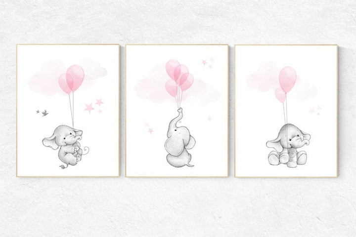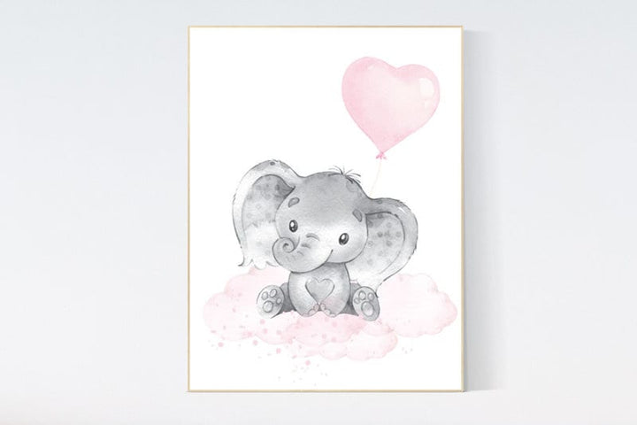 Nursery decor girl, elephant balloon print, elephant artwork, elephant wall art, baby girl nursery wall art, Elephant Nursery Prints