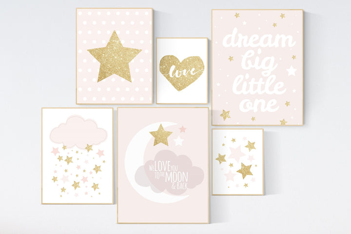 Nursery decor girl, blush gold, moon nursery wall art, blush wall decor, we love you to the moon and back, blush pink, moon star, cloud