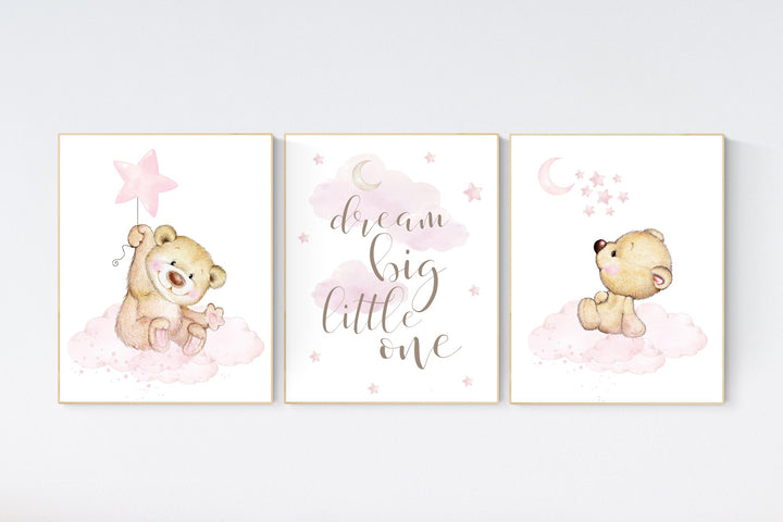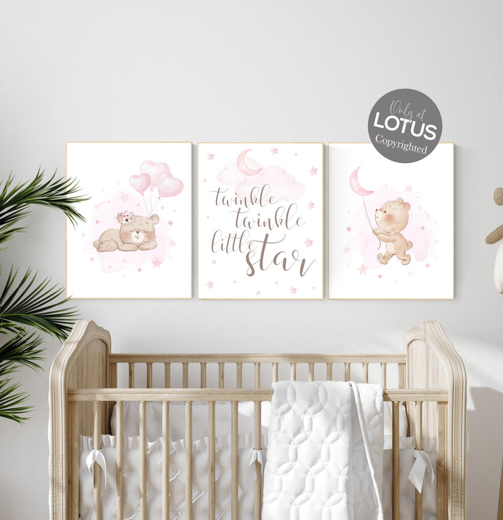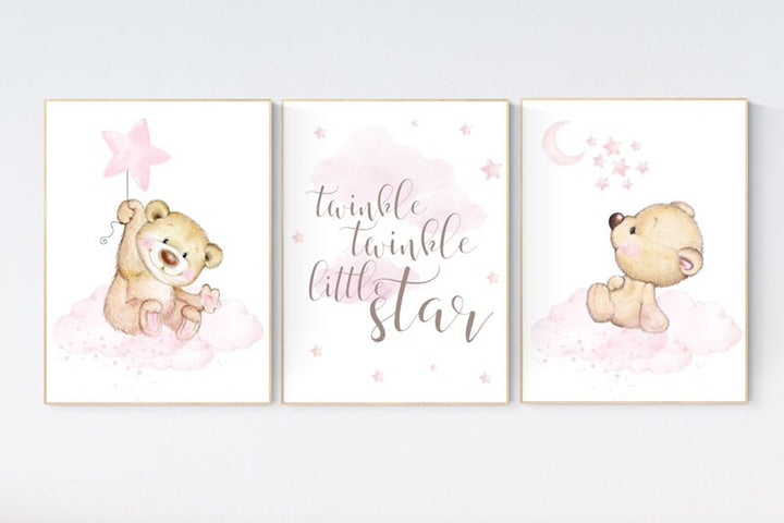 Bear nursery print, Nursery decor girl wall art, pink nursery art, bear nursery wall art, teddy bear, nursery wall art, bear print nursery