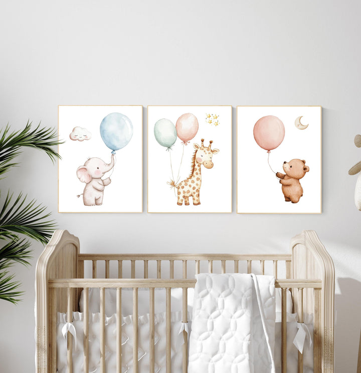 Balloon nursery. Gender neutral nursery decor, animal nursery, color nursery, nursery wall art, gender neutral baby room decor, wall art