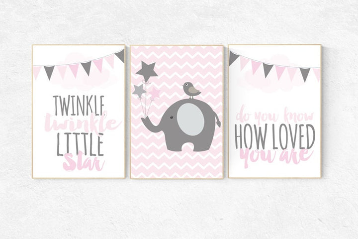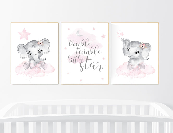 Nursery decor girl, elephant nursery, Twinkle Twinkle Little Star, nursery wall art, nursery prints girl, girl nursery wall art, elephant
