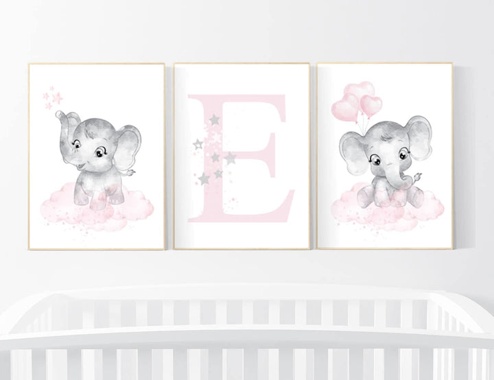 Nursery decor girl, Elephant nursery, nursery wall art elephant, baby room, girl nursery decor