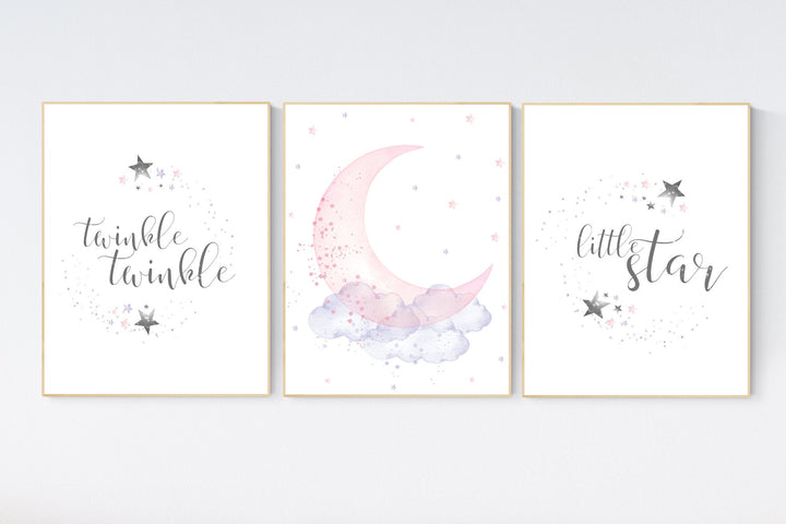 Nursery decor girl, lavender, nursery decor girl pink and purple, twinkle twinkle little star, stars nursery, pink purple, lilac nursery