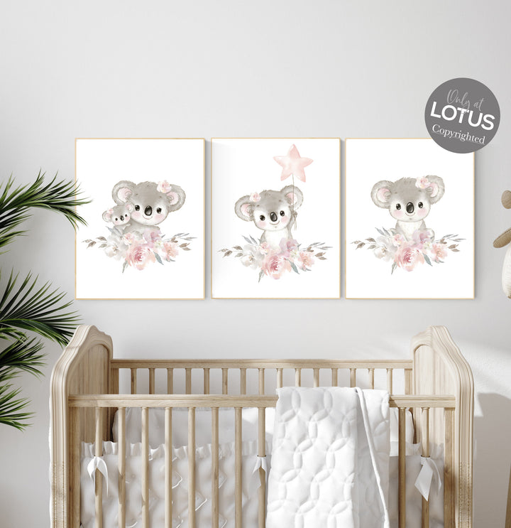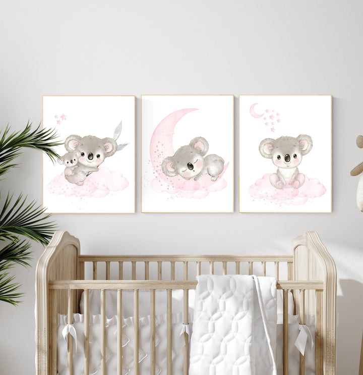 Nursery decor girl, koala nursery decor, koala print, pink nursery art, nursery prints animals, pink nursery decor, koala themed nursery