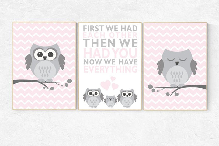 Nursery decor girl, owl nursery, Owl nursery wall art, pink nursery decor, pink gray, owl room decor, owl nursery decor girls, owl prints