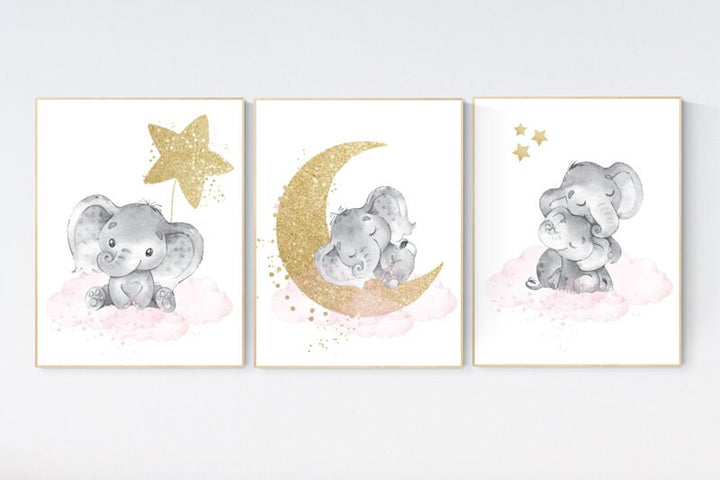 Nursery decor girl, pink and gold, Nursery decor girl elephant, pink gold, nursery wall decor, nursery wall art girl, elephant nursery art