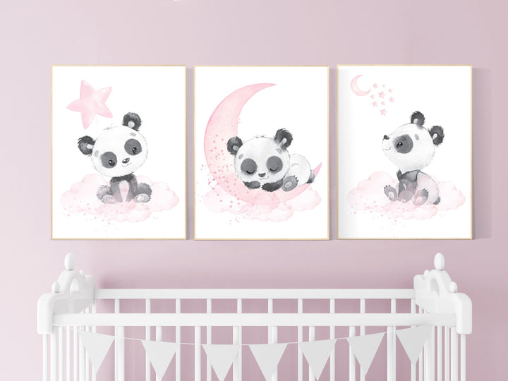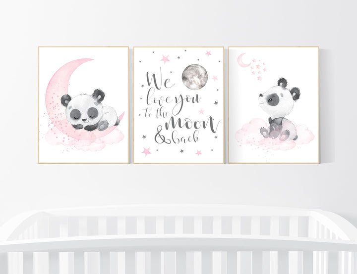 Nursery decor girl, panda nursery, pink and gray nursery wall art, panda nursery print, nursery